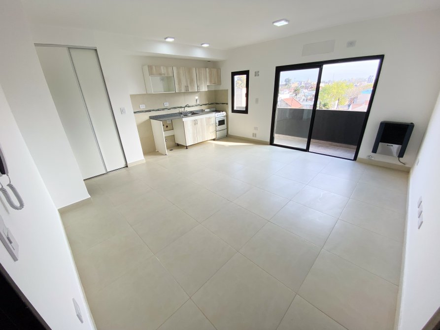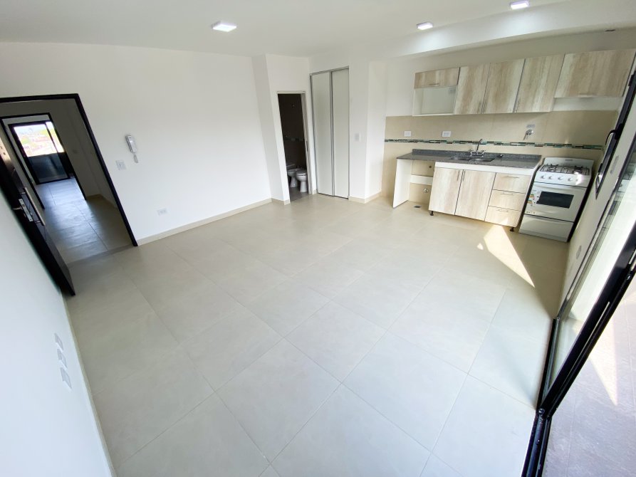 Ambiente único amplio con piso cerámico, placard empotrado con sus interiores, portero eléctrico, estufa a gas tiro balanceado, conexión para aire acondicionado.y ventana balcón al frente