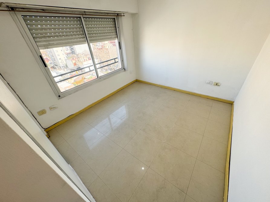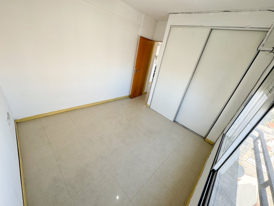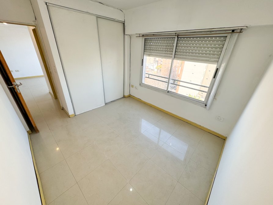 Dormitorio con piso de porcelanato, placard empotrado con puertas de melamina y ventana al contrafrente con persiana